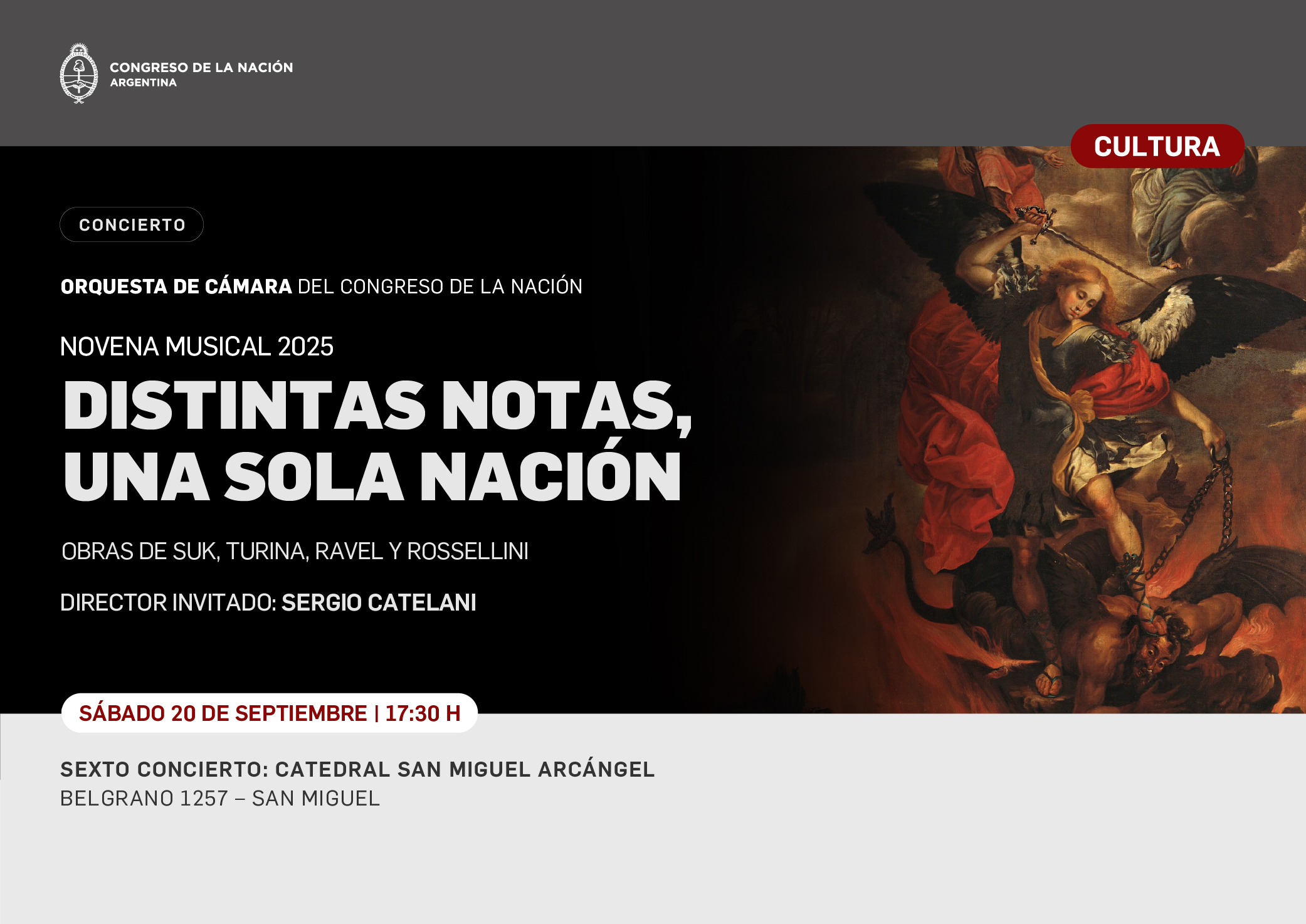 La Orquesta de Cámara del Congreso de la Nación presenta el sexto concierto de su ciclo Novena Musical 2025: Distintas notas, una sola Nación, que a lo largo del año la lleva a presentarse en nueve templos católicos de la Ciudad de Buenos Aires y de la provincia de Buenos Aires.