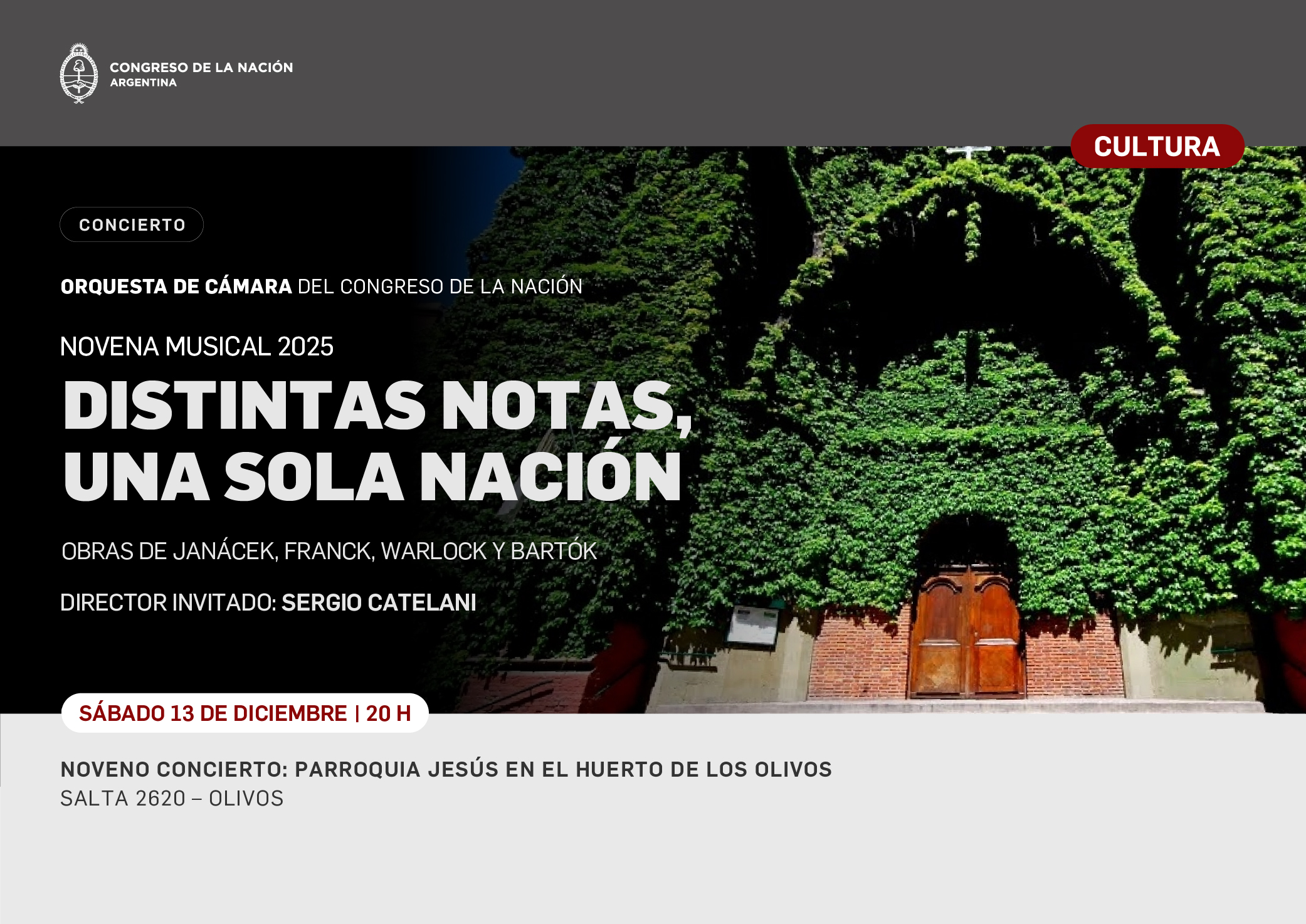 Además de este ciclo, la Orquesta desarrolla durante 2025 su temporada oficial, con diez conciertos en el Salón de Pasos Perdidos del Palacio Legislativo, y el programa de Conciertos Itinerantes, con seis presentaciones en salas emblemáticas de la Ciudad de Buenos Aires.Conformada por veintiún músicos de cuerda, la Orquesta de Cámara del Congreso de la Nación cuenta con 35 años de trayectoria ininterrumpida y ha sido distinguida en tres oportunidades por la Asociación de Críticos Musicales como la “mejor orquesta de cámara del país”.