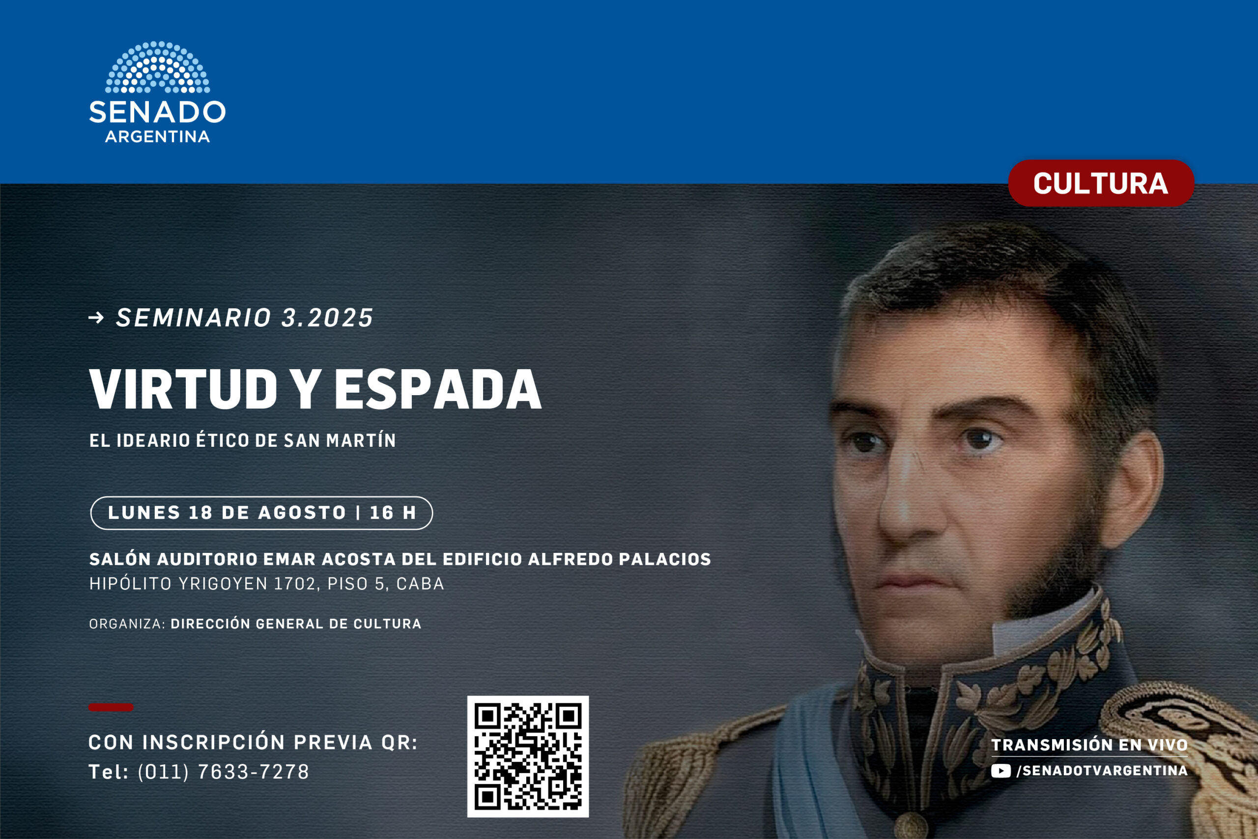 El 18 de agosto a partir de las 16, se desarrollará en el marco del ciclo de seminario organizado por la Dirección General de Cultura del Honorable Senado de la Nación, un encuentro que propone examinar la figura del Libertador desde una perspectiva ética y humanista, profundizando en el vínculo entre su ideario moral y su acción política y militar.